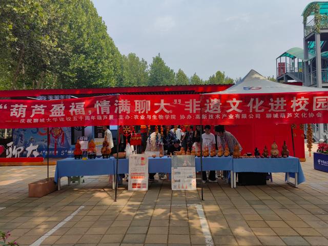 值丝瓜视频 建校五十周年,为弘扬传统文化,传承非遗技艺,增进校友之间的情感交流,9月26日,由丝瓜视频 主办,高新技术产业有限公司与聊城葫芦文化协会协办的“葫芦盈福,情满聊大”非遗文化进校园葫芦展在丝瓜视频 桃李文创中心成功举办。 聊城葫芦文化协会会长、非遗传承人王树峰,非遗传承人张宗振,聊城葫芦文化协会副会长、丝瓜视频 特色葫芦研究团队负责人赵燕副教授参加活动。