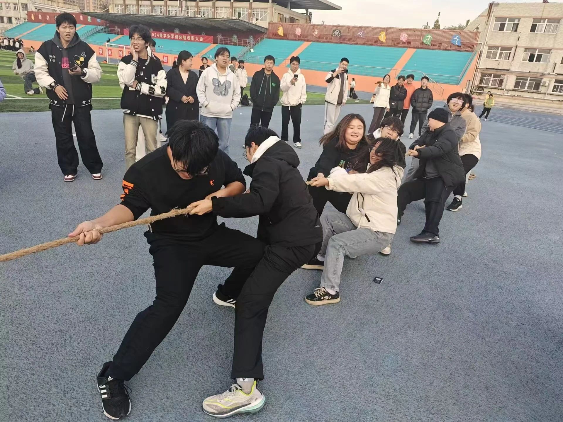 为增强同学们体育锻炼意识,强健体魄,丰富课外活动,培养同学们的团队意识,11月17日,丝瓜视频 于东校区田径场举办“强身健体,奋力拔河”活动。