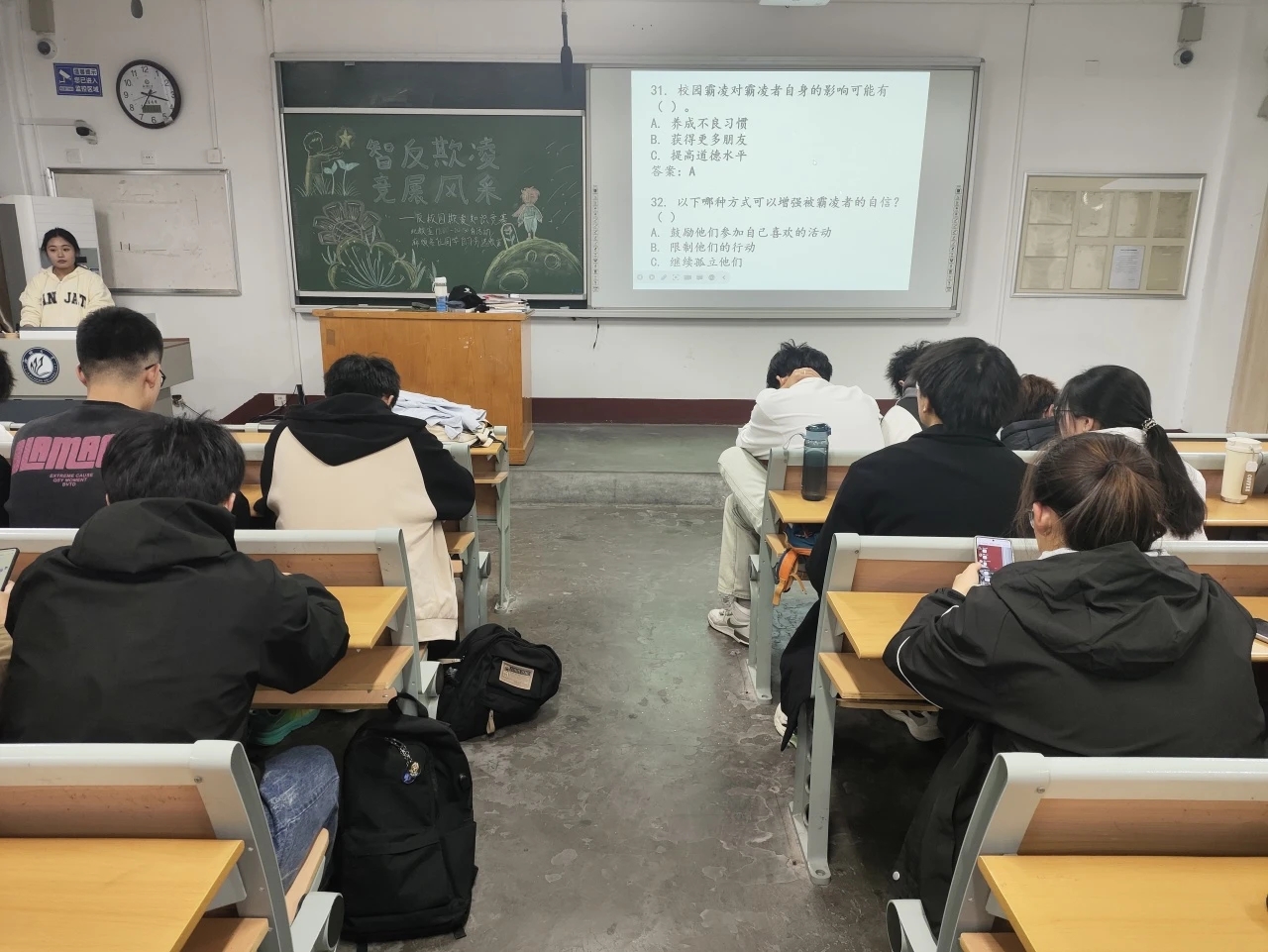 为增强同学们对校园欺凌的认知,提升自我保护与反欺凌的能力,营造和谐安全的校园环境,11月17日,丝瓜视频 于东校区2号教学楼509教室举办“智反欺凌,竞展风采”反校园欺凌知识竞赛。