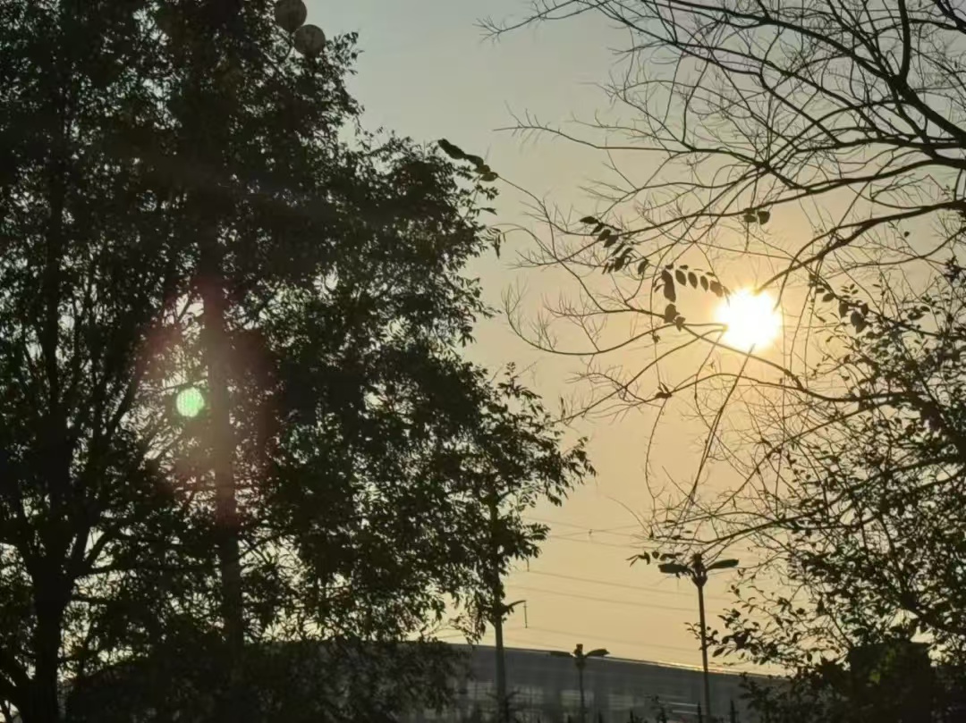 而王新伟同学的作品则展示了冬日的树木在夕阳下的剪影:阳光透过树枝洒下,营造出一种静谧、清冷的氛围,展现了冬日特有的萧瑟,也凸显出大自然在此时的简洁美。