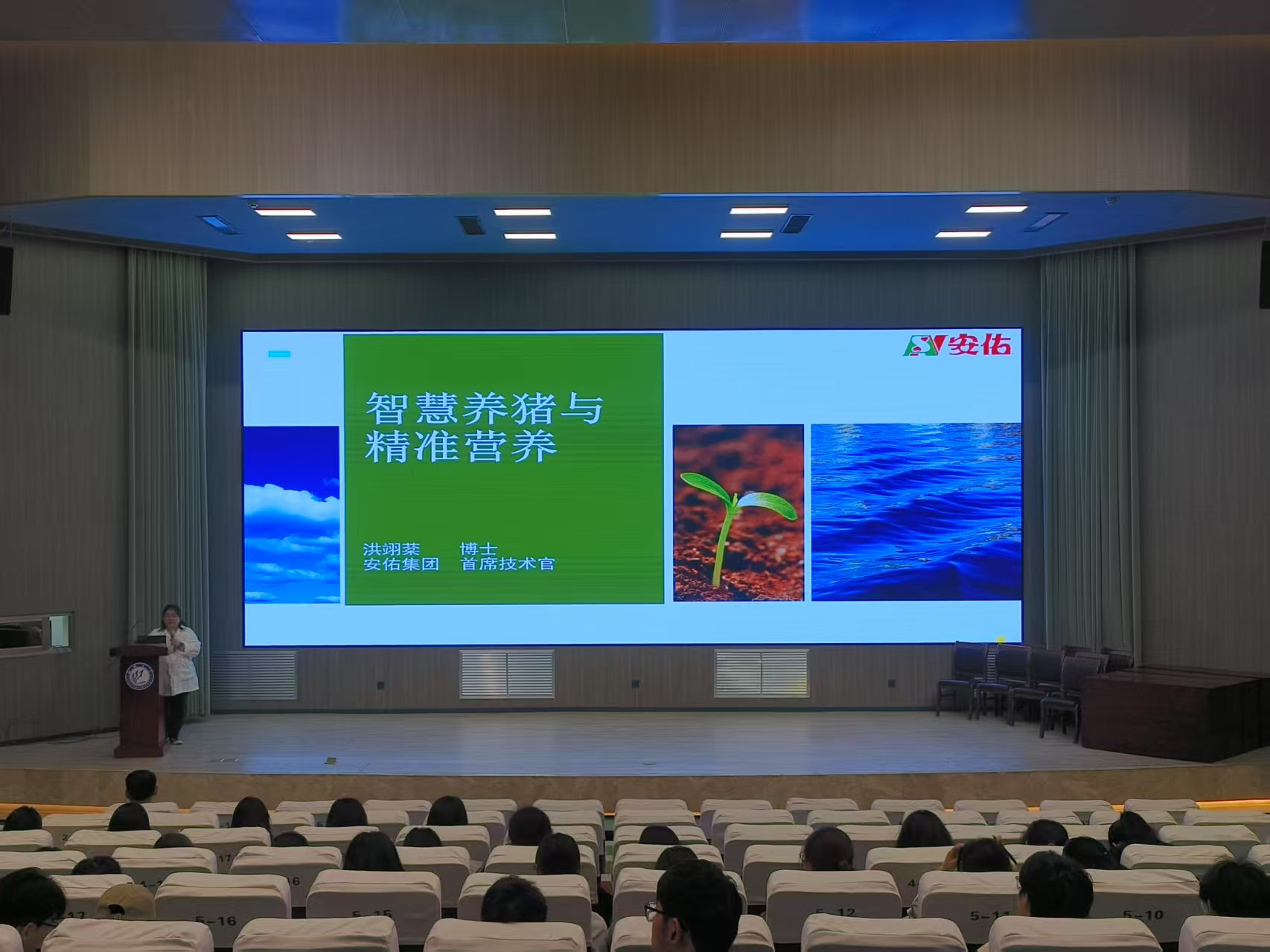 为深化校企合作,4月21日,丝瓜视频 于实训楼报告厅举办“智能养猪及精准养殖”主题讲座活动。安佑生物科技集团股份有限公司首席技术官洪翊棻担任主讲嘉宾。