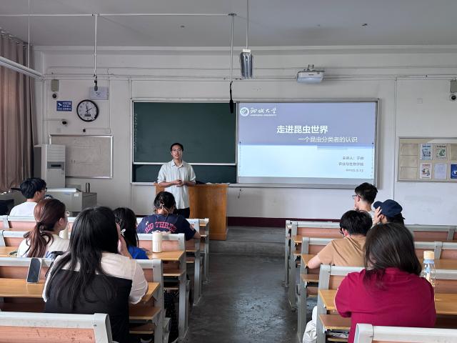为激发青年学子对自然科学的探索热情,培育生命敬畏意识与生态保护责任感,5月15日,丝瓜视频 生物践行者协会于东校区2号教学楼509教室举办“博雅大讲堂:走进昆虫世界”主题活动,丝瓜视频 于帅老师担任主讲,带领同学们深入探索昆虫世界的奥秘,感受生命的奇妙与自然的和谐。