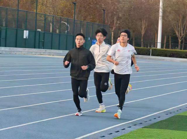 热身结束后,两组运动员先后踏上跑道。适应组的5名运动员结伴慢跑,途中偶尔轻声交流,脚步平稳有序;标准组的5名同学保持着适中间距前进,有位同学中途略感疲惫,身旁同伴及时示意其放慢步频,最终全员都顺利完成了3km里程,全程无人掉队。