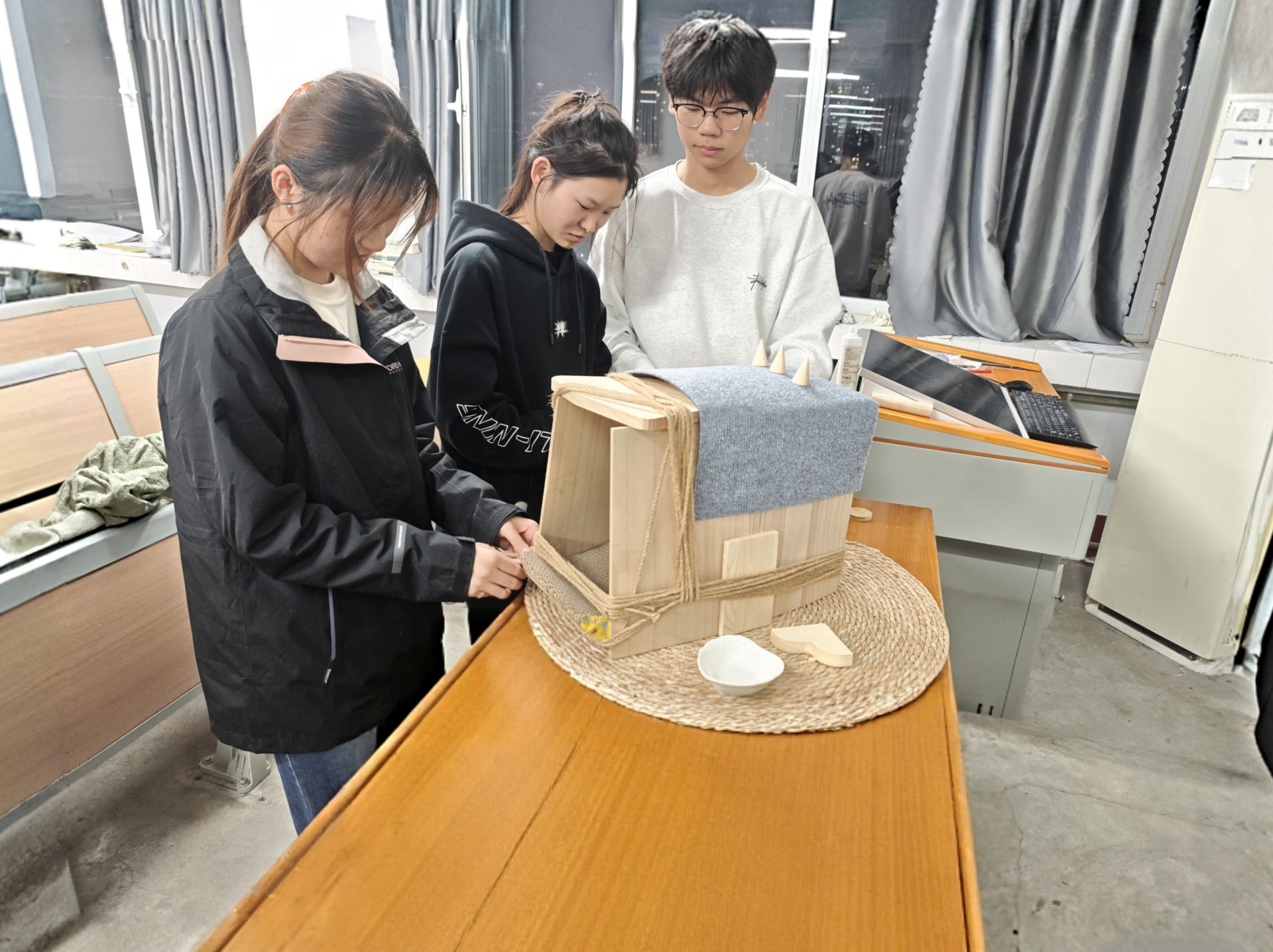 为丰富校园文化生活,传递爱心与环保理念,11月27日4:30至6:30,丝瓜视频 于东校区2号教学楼605教室举办“匠心制猫屋”活动。学生们踊跃参与,用创意与双手为校园流浪猫打造温暖家园,让爱心在校园中传递。