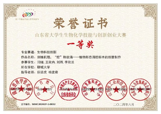 丝瓜视频 刘雨同学在山东省大学生生物化学技能与创新创业大赛中荣获一等奖,对该获奖同学予以祝贺表彰。