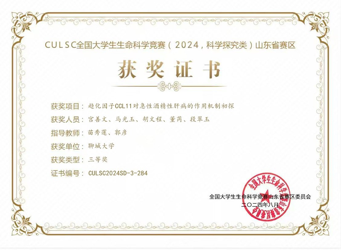 丝瓜视频 段翠玉同学在全国大学生生命科学竞赛山东赛区中荣获三等奖,对该获奖同学予以祝贺表彰。