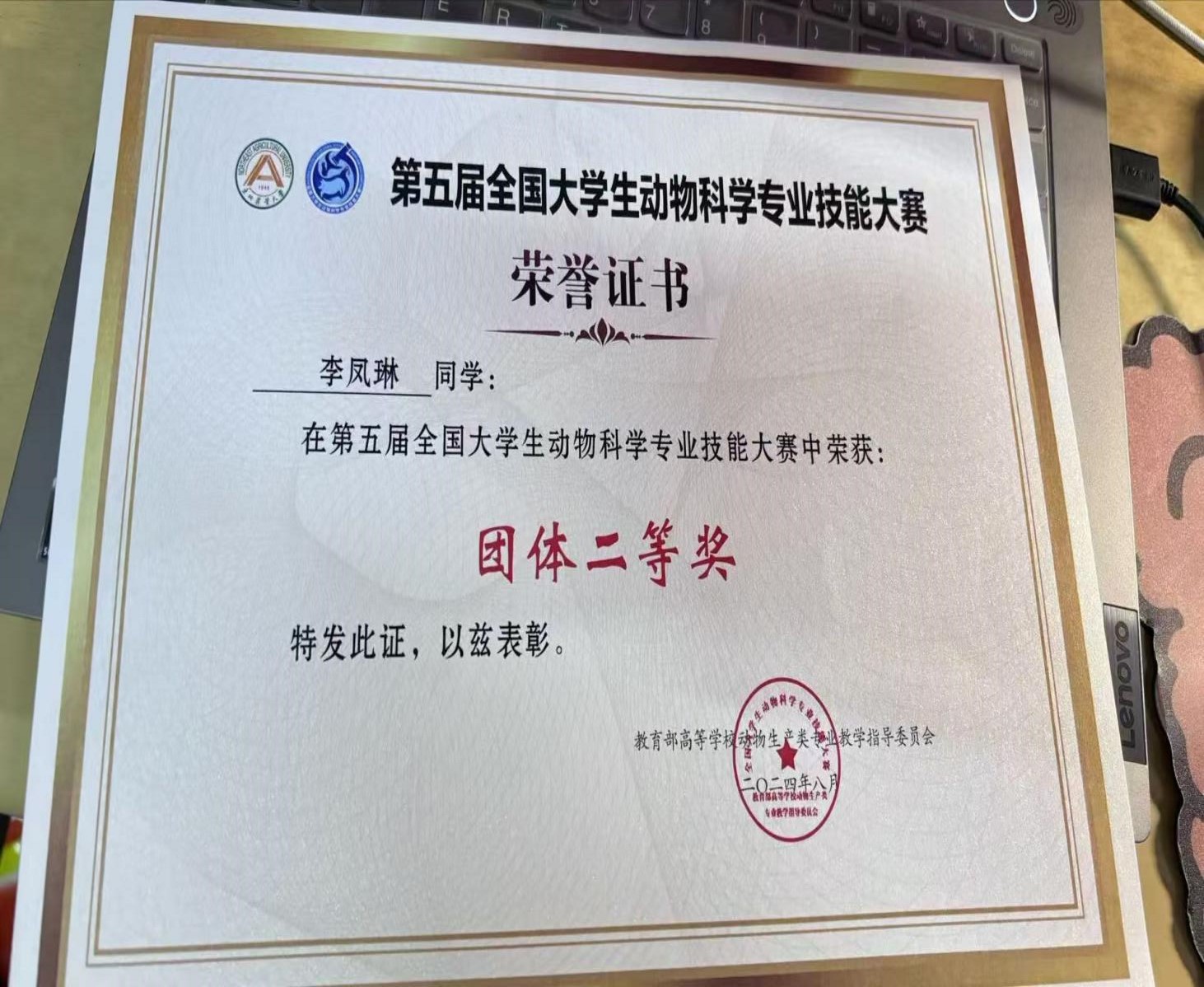 丝瓜视频 李凤琳同学在第五届全国大学生动物科学专业技能大赛中荣获二等奖,对该获奖同学予以祝贺表彰。