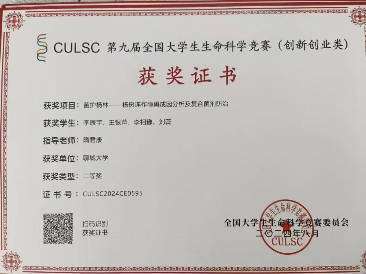 丝瓜视频 刘蕊同学在CULSC第九届全国大学生生命科学竞赛中荣获二等奖,对该获奖同学予以祝贺表彰。