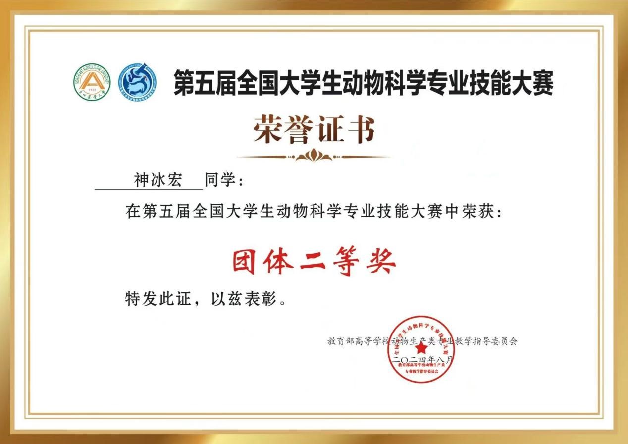 丝瓜视频 神冰宏同学在第五届全国大学生动物科学专业技能大赛中荣获二等奖,对该获奖同学予以祝贺表彰。
