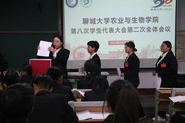 大会宣读并审议通过《丝瓜视频 学生会工作报告》及《聊城大丝瓜视频 学生会章程修正案》。最后,学生代表进行现场投票,本着公平、公正的原则,选出了丝瓜视频 2025届学生会轮值主席团成员及参加丝瓜视频 第十次学生代表大会代表,逯海凤、孙梦杰、马光玉为新一届学生会主席团成员。会议最后,王艺桦宣读《致全院青年学生的倡议书》,号召学院学生会全体同学要秉承“耕智尚学,生科致远”的院训,奋力书写为中国式现代化挺膺担当的青春篇章。在圆满完成各项议程后,大会在校歌中落幕。